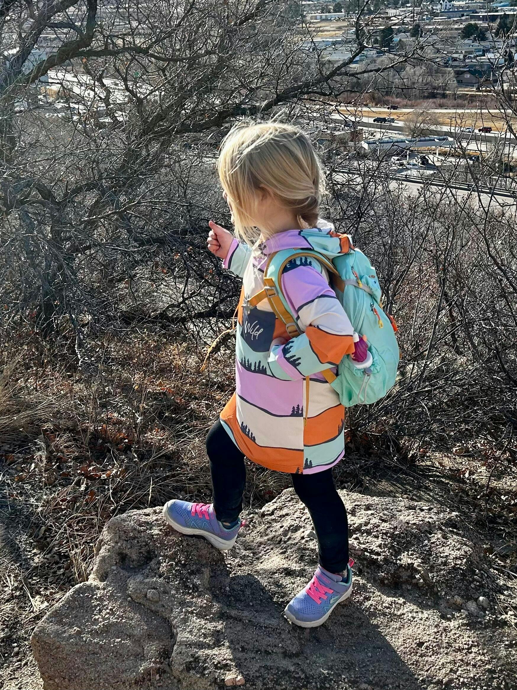 With adjustable straps and a chest strap, this light blue kids backpack is perfect for young hikers (2 to 7 years old). It also features a compartment for a 1-liter bladder and multiple pockets for storage. Side pockets expand to fit kids water bottle. Stay hydrated and organized on your next adventure!